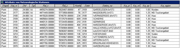 In METEOR wird davon ausgegangen, dass die meteorologischen Daten punkt- bzw. stationsbezogen gewonnen wurden. Angaben zu den Stationen, ihre Lage und die zugeordneten Datentabellen werden in einer Stationstabelle verwaltet.