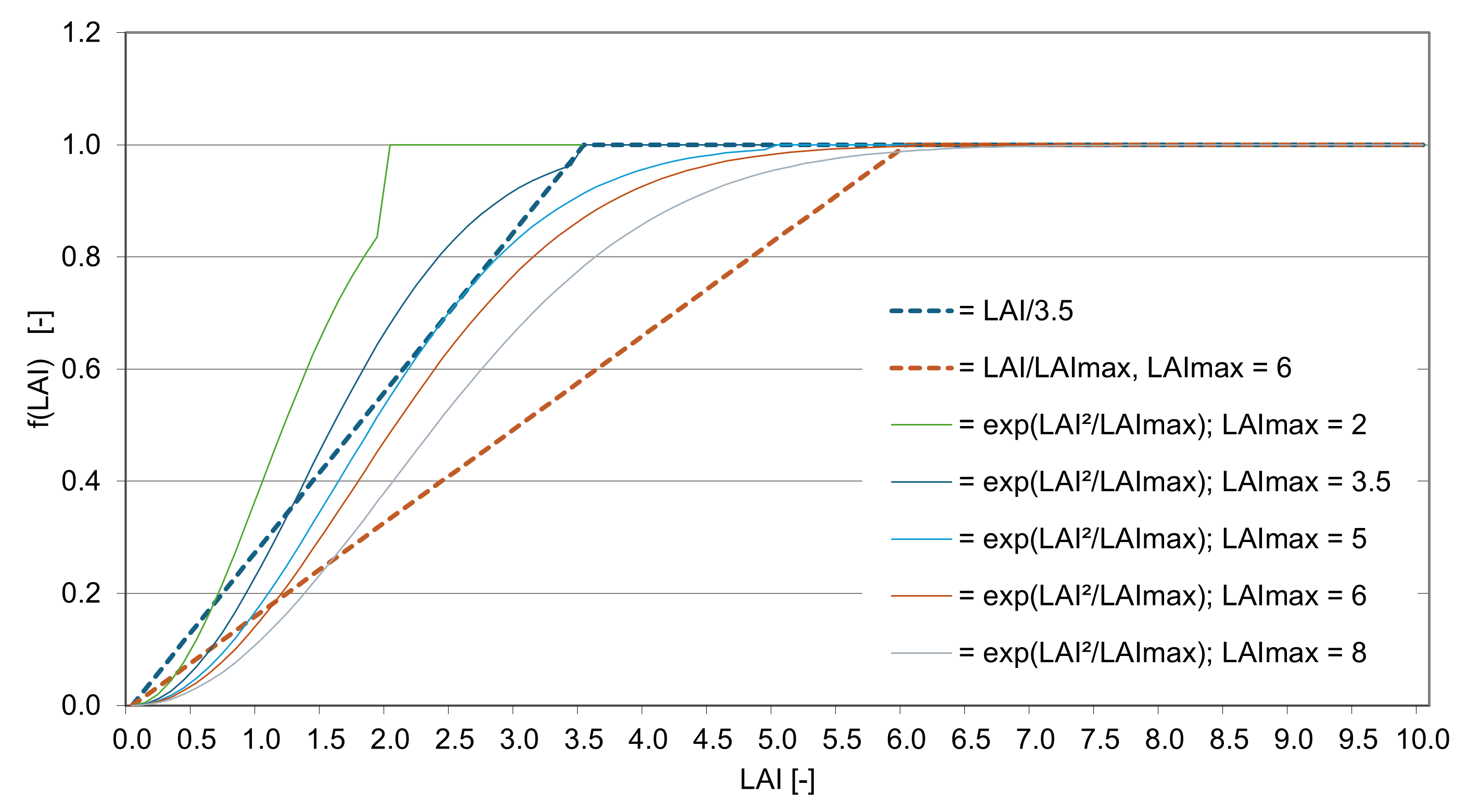 3 exponentiell bzgl. LAImax: (1 – exp(-(LAI²) / LAImax))